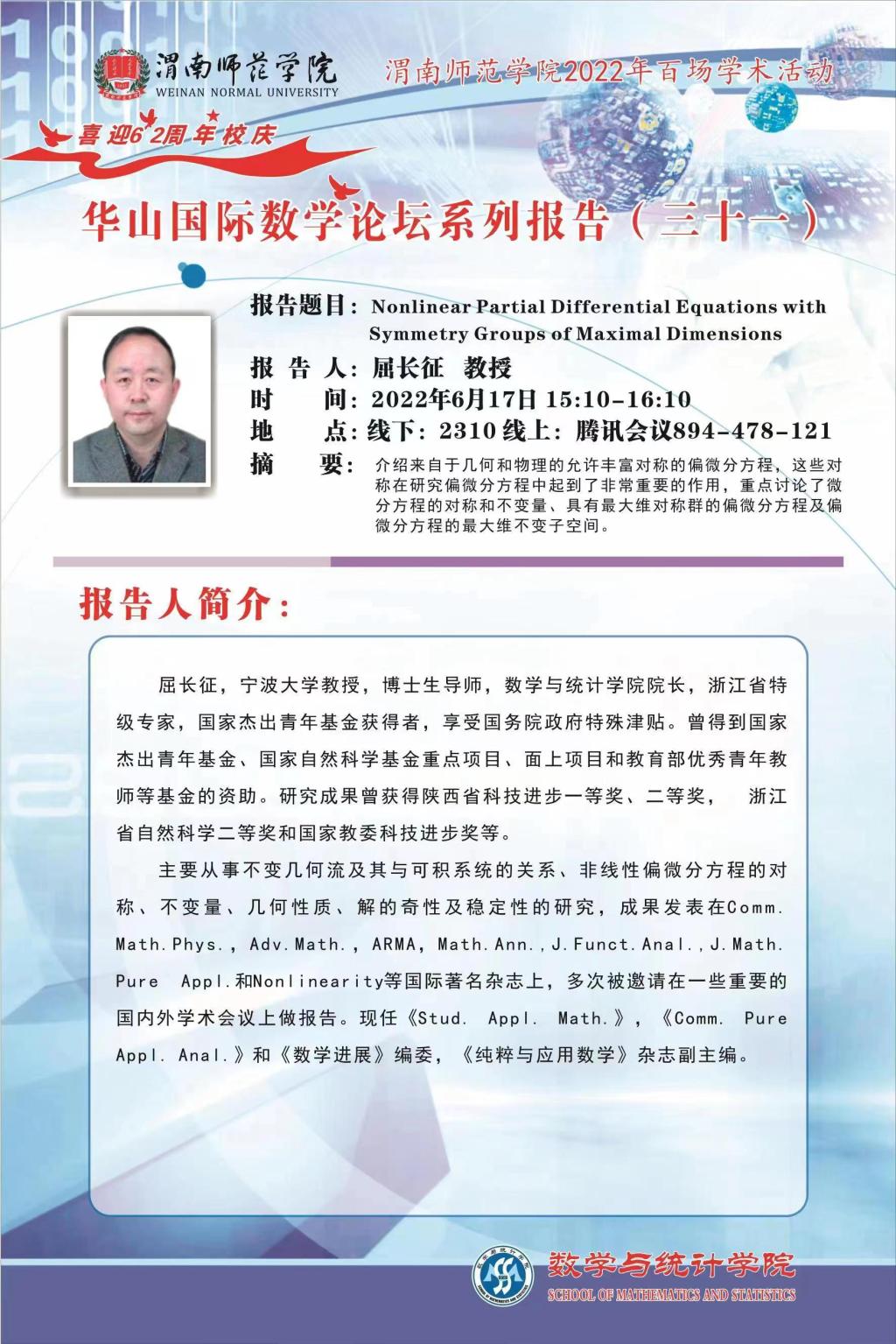 华山国际数学论坛系列报告(三十一)