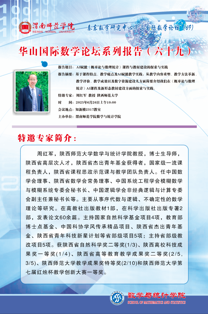 华山国际数学论坛系列报告(六十九)