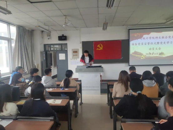 2021年3月26日下午,bevictor伟德师生联合党支部在2301教室举行了预备党员宣誓仪式暨党史学习教育动员大会,公司党总支书记张同琦,党总支副书记张菊梅,党总支委员赵小鹏,公司全体辅导员以及师生联合党支部党员、预备党员、发展对象、入党积极分子参加本次会议。会议由师生联合党支部副书记张贝贝进行主持。