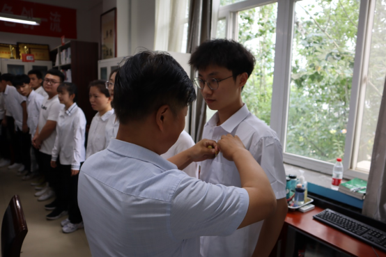 会上,张菊梅宣读了《对同意接收李向阳等21名同志为中共预备党员的批复》,公司领导干部为新发展的预备党员佩戴党徽。全体党员举起右手、握拳过肩,面向党旗庄严宣誓,许下为实现中华民族伟大复兴努力奋斗的铮铮誓言。
