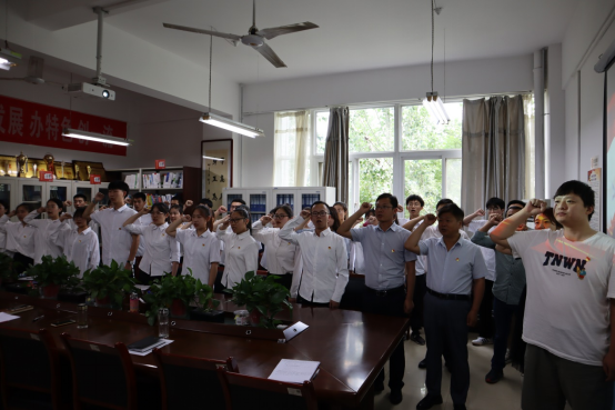 2021年7月1日下午,bevictor伟德师生联合党支部在2318会议室举行了预备党员宣誓仪式暨党课学习大会,公司党总支书记张同琦、经理陈斌、党总支副书记张菊梅、副经理戴磊、副经理赵教练、师生联合党支部副书记张贝贝、师生联合党支部所有委员以及全体预备党员参加本次会议。本次会议由师生联合党支部纪检委员张媛主持。