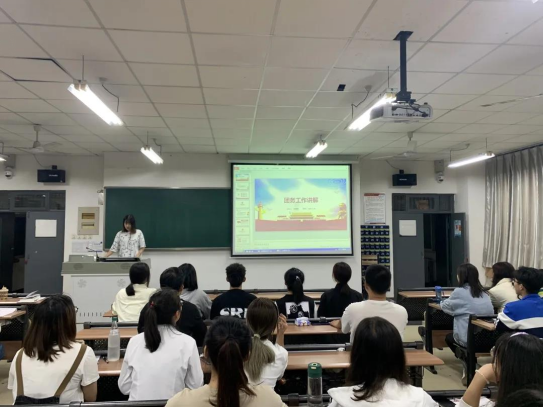 接着,张律言对团务工作进行讲解,一共分为四部分:青年大学习、团档案的组成部分、智慧团建、青年建功新时代。帮助积极分子们深入学习团的理论知识,厚植爱党、爱国、爱社会主义的情怀,倡导共青团员们了解历史,增强守初心、担使命的思想和行动自觉,让红色基因和革命圣火代代相传。