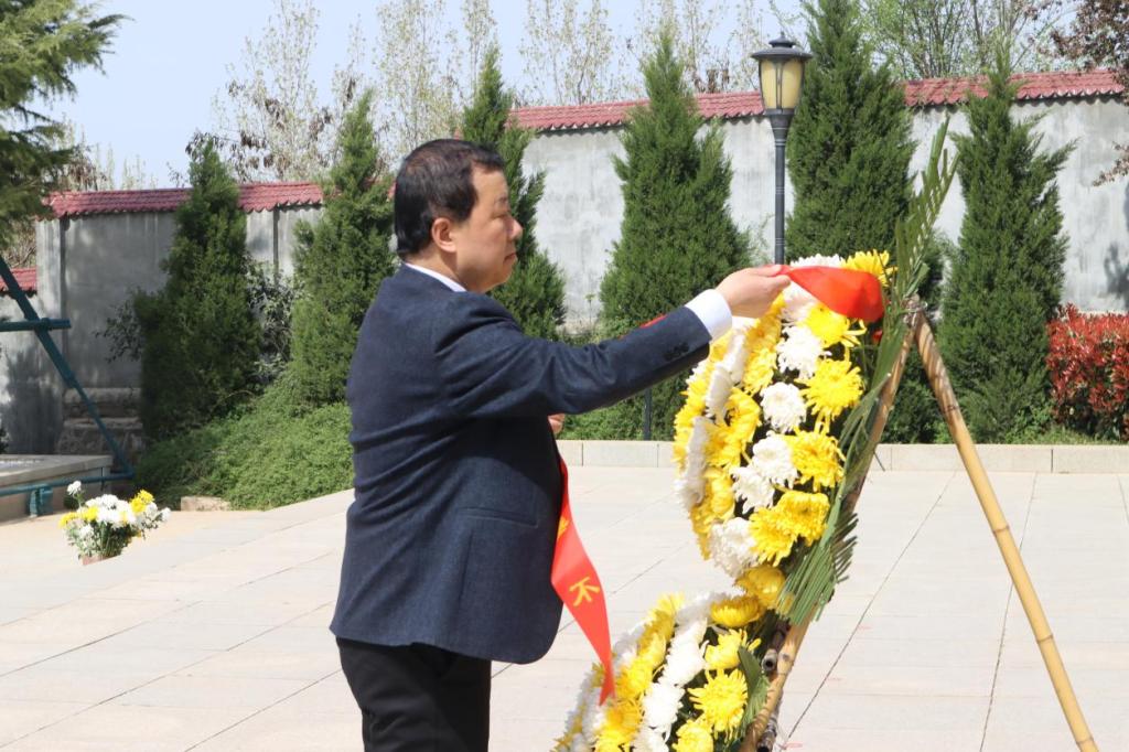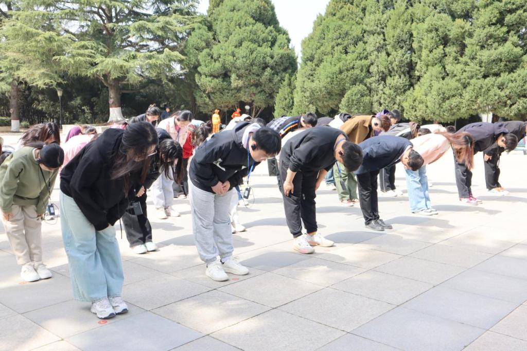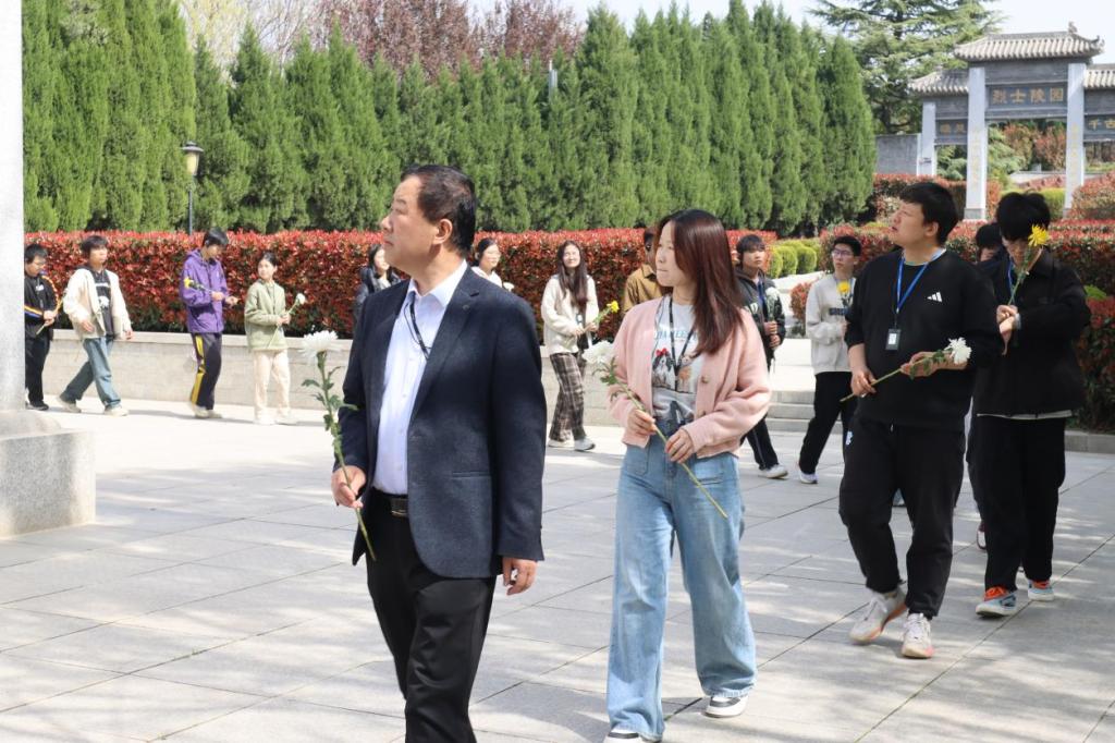 活动在庄严的国歌声中拉开帷幕,全体人员面向渭华起义烈士纪念碑,对英勇献身的革命先烈致以最崇高的敬意。国歌唱毕,全场肃立,党员代表将花篮缓缓抬至纪念碑前,公司党总支书记武江波上前整理花篮缎带,全体师生在工作人员带领下向革命烈士敬献菊花,面向纪念碑三鞠躬、默哀致敬,寄托对革命先烈的崇高敬意和深切哀思。