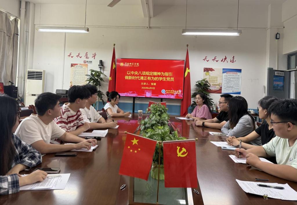 张媛从“为何学”“学什么”“怎么做”三个维度展开,结合高校员工党员实际,深入浅出地讲解了中央八项规定不仅是党员干部改进作风的基本遵循,更是新时代青年党员锤炼党性、践行初心的行动指南,号召党员在学习中拒绝虚假应付、在工作中摒弃官僚作风、在生活里培养清廉品格,真正将纪律要求内化于心、外化于行。