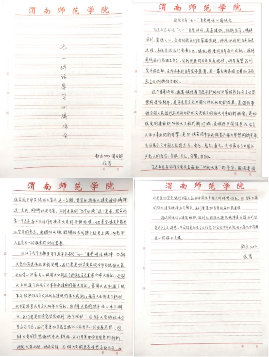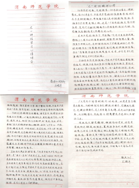 随后各位团员互相交流学习成果,发表见解,并书写了七一讲话学习心得体会,认真学习贯彻习近平总书记“七一”重要讲话精神,广大青年表示,要肩负起历史使命,坚定前进信心,立大志、明大德、成大才、担大任,努力成为堪当民族复兴重任的时代新人,让青春在不懈奋斗中绽放绚丽之花。