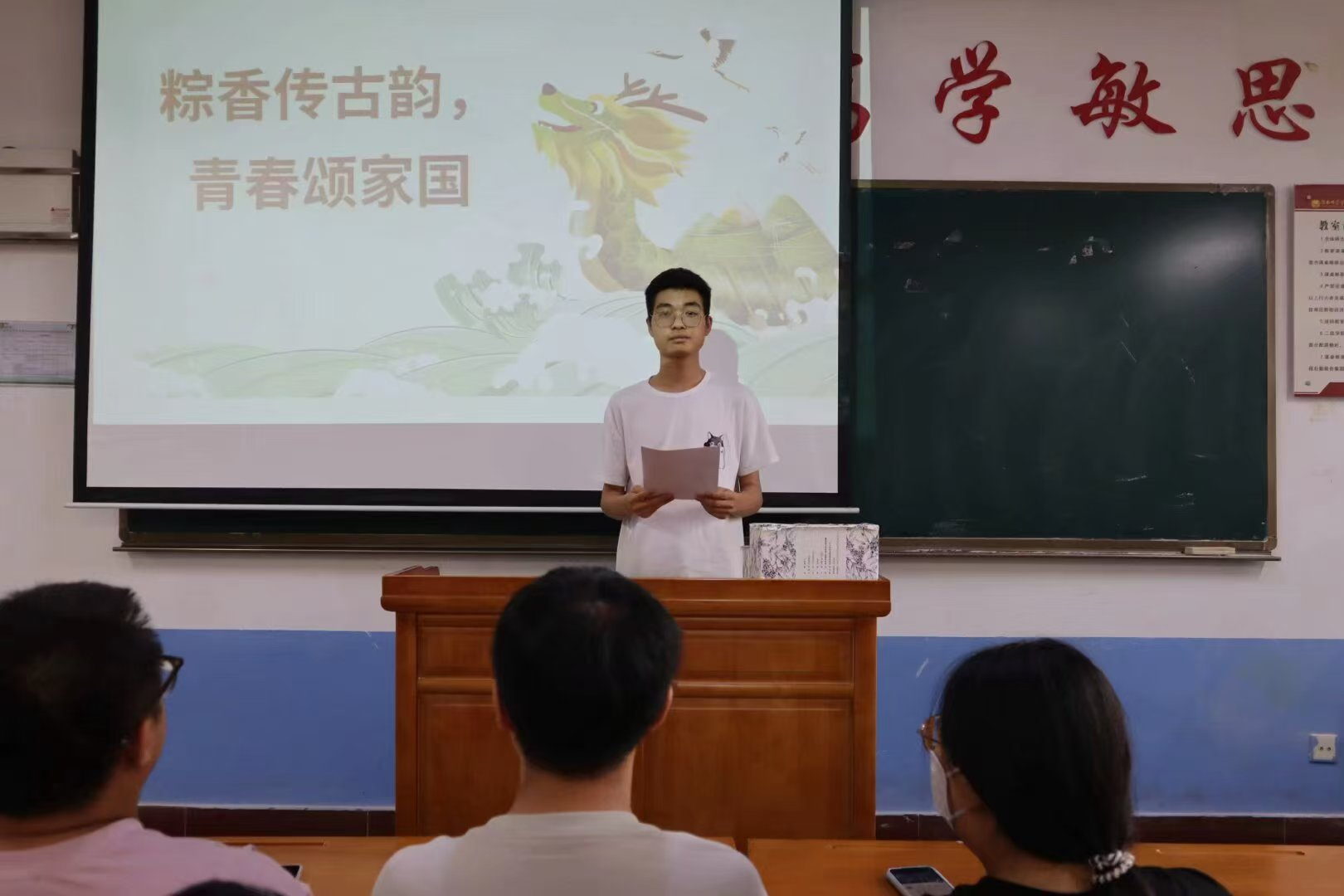 活动伊始,主持人李思茜以生动的讲述,带领同学们穿越千年时光,从端午驱邪祈福的古老民俗讲起,延伸至屈原矢志报国的动人故事,深入阐释了端午节深厚的文化底蕴,为活动拉开精彩序幕。 活动筹备阶段,同学们围绕主题精心构思、踊跃创作,涌现出一批视角独特、情感真挚的优秀征文。分享环节中,多位同学自信登台,以文字为舟、以声音为桨,在端午文化的长河中与听众共赴精神之旅。有的同学化身历史研究者,从典籍入手,层层剖析端午习俗的起源与演变;有的同学结合成长经历,深情讲述家乡端午包粽、赛龙舟的独特风情,勾起现场听众的情感共鸣;更有同学立足时代前沿,探讨如何通过数字文创、短视频等创新形式,让端午文化在新时代焕发勃勃生机。