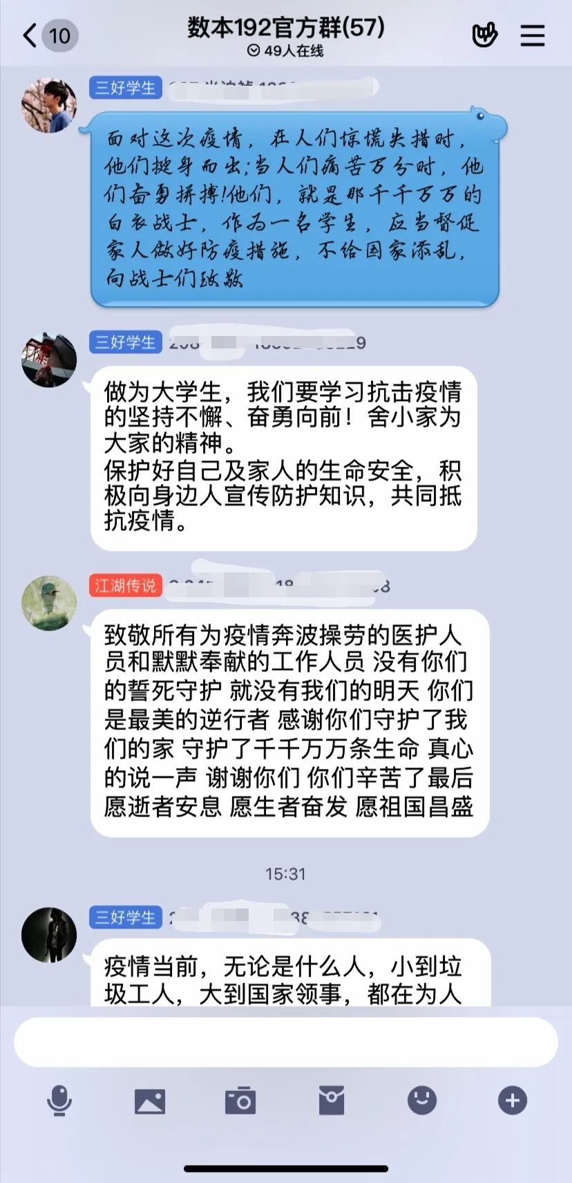 针对目前的疫情防控现状,个人自觉性和责任感很大程度上决定着防疫工作的发展方向,作为高校思政工作的主体,这次主题班会很必要也很及时,在引导员工珍爱生命,树立责任意识的同时,也加强了对员工的爱国主义教育的目的。