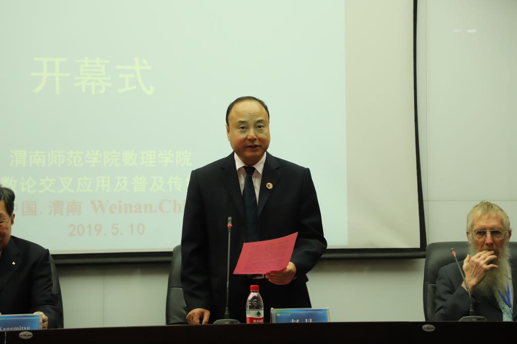 大会开幕式由副董事长李海龙教授主持,董事长赵曼出席开幕式并致辞,首先,赵董事长对大会在公司的召开表示祝贺,对出席本次研讨会的各位国内外专家学者表示热烈的欢迎!对长期以来投身数论研究教学工作的各位老师,以及潜心求学的各位同学,表示崇高的敬意!其次,赵董事长向与会专家学者介绍了公司和公司数理公司的基本情况,着重介绍了由公司“数论研究团队”发展而成的“西北数论交叉应用及普及传播中心” 近年来在团队队伍、科学研究和学术交流等方面取得的喜人成果。最后,赵董事长强调,本次数论国际研讨盛会正值第四届丝绸之路教育合作交流会召开前夕,具有特别的意义!他期待国内外学者能借此机会积极开展深入的学术交流,从中开阔新视野、拓展新思路、汲取新知识和搭建新平台,并预祝大会圆满成功,各位专家在渭南身体健康,学习愉快!
