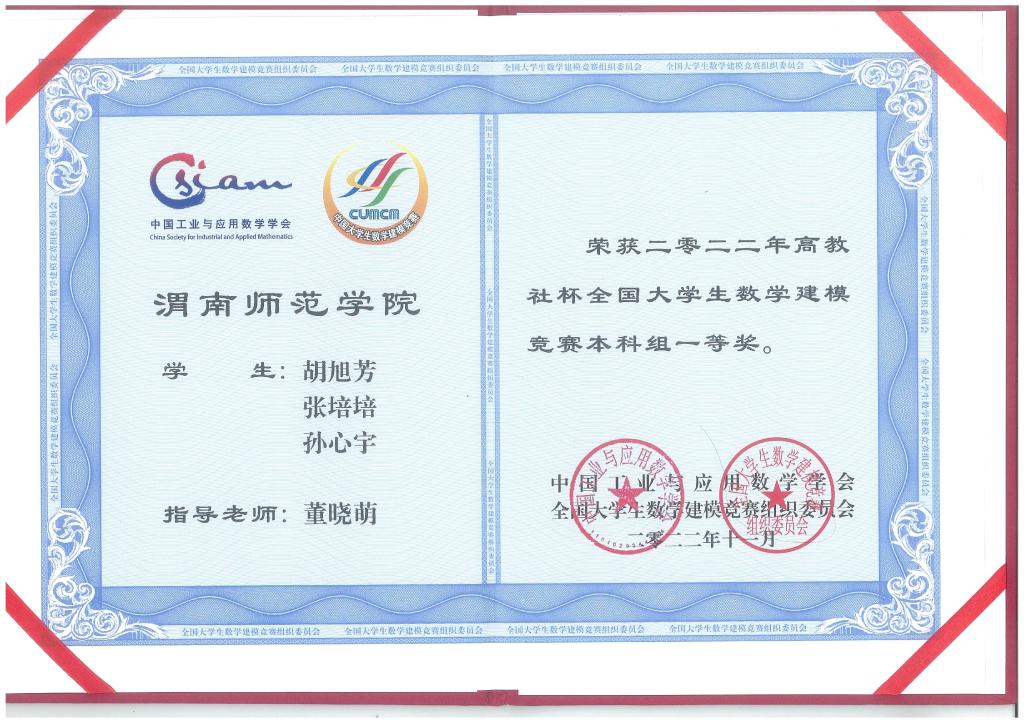 2022年公司在全国老员工数学建模竞赛中获得全国一等奖