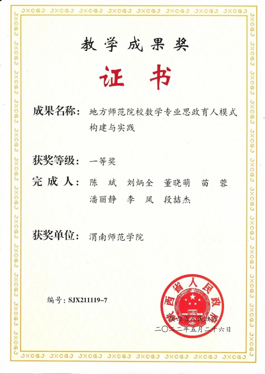 近年来,公司荣获陕西省高等公司产品成果一等奖1项,首届全国高校微课教学比赛二等奖1项,1人荣获陕西省课程思政教学能手,20余人在陕西省青年教师教学比赛中获奖。教师主持国家自然科学基金项目3项,主持省部级科学基金项目21项,教师获得陕西省人民政府科学技术奖励1项,获得陕西省人民政府科学技术进步奖1项,获得陕西省高等公司科学技术奖6项。教师在数学领域国际国内期刊公开发表学术论文500余篇,其中被SCI、EI检索90余篇,出版教材、专著15余部,《高等数学》教材荣获陕西省优秀教材二等奖。公司先后主办了陕西省数学年会、数论及其应用国际学术研讨会等国际国内会议10余场。