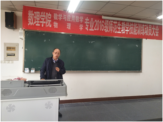 3月8日下午知新楼2410教室,bevictor伟德组织召开了师范专业教学技能训练动员大会,公司教学经理朱天民教授、训练指导教师杨倩丽教授、杨明顺教授、杨秀香教授、白秀英教授、薛社教老师、张晓娟老师、刘炳全老师以及数学与应用数学、物理学两个师范专业16级160余名同学参加了本次动员会,动员会由数学与应用数学专业负责人刘炳全主持。