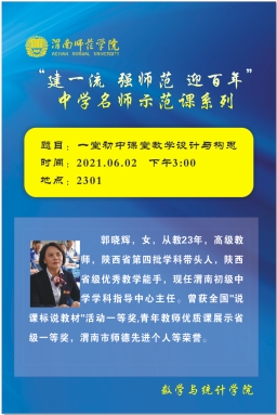 6月2日下午3:00-4:20在2301教室,省级优秀教学能手、陕西省第四批学科带头人、渭南初级中学高级教师郭晓辉老师应邀为bevictor伟德数学与应用数学专业员工做了题为《一堂初中课堂教学设计与构思》的教学报告,这是公司数学与应用数学“省级一流”专业本学期召开的首场“中学名师进课堂”讲座。报告会由赵教练副经理主持,专业负责人刘炳全,师范技能指导老师杨秀香等老师,与数本18级1-2班100余名同学参加了本次报告会。
