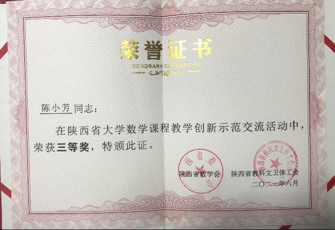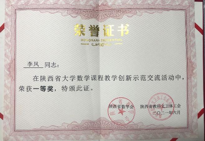 研讨会为陕西高校大学数学课程教学创新示范交流活动中获奖个人和优秀组织奖举行了隆重的颁奖仪式,bevictor伟德副教授李凤获得一等奖,副教授陈小芳获三等奖。