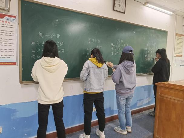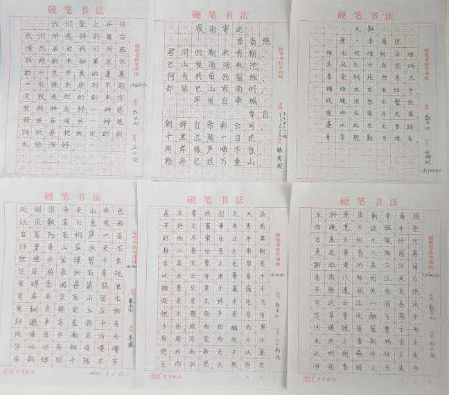 首先全部参赛同学先分组进行了粉笔字和钢笔字展示,由夏超老师评审打分并提出修改建议。与实习前相比,大部分同学的三字书写技能有了较大程度的提升。