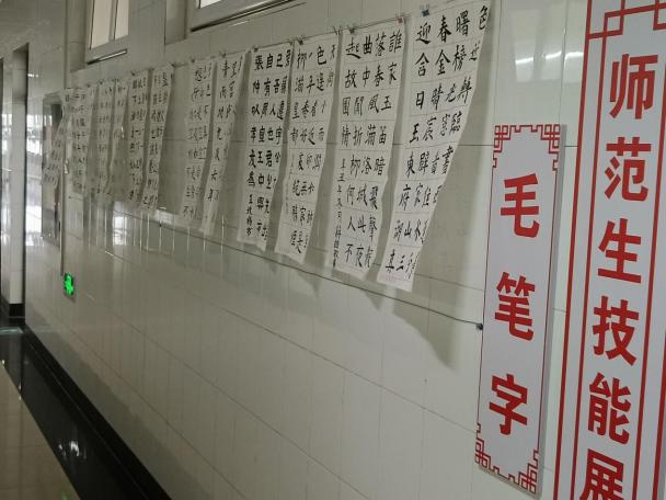 本次教学技能达标汇报的主要内容有课程课件制作、说课、模拟授课、粉笔字、钢笔字展示等形式。在技能达标汇报活动中同学们积极参与,模拟授课时同学们能够正确处理教学目标的预设和生成之间的关系,讲授条理清楚、教学语言规范、表达清楚,也能够恰当使用教学媒体和信息技术,教学演示比较规范,具有一定的教学特色。