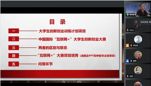 张岩波对本届“互联网+”大赛各赛道规则和评分细则做了深入解读,结合自身多年的带队经验,从选题、撰写报告、路演等多方面为指导教师和参赛员工传授经验,并详细讲解了“大创项目”与“互联网+”大赛的区别和联系。