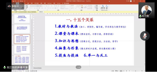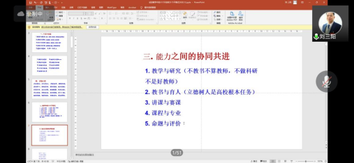 刘教授指出,能力之间的协同共进十分重要,这些包括了教学与研究、教书与育人、讲课与赛课、课程与专业和命题与评价等之间的兼顾和协同共进。不仅如此,刘教授还补充强调,教学的内涵日益丰富,面对的任务越来越多,从宏观到微观存在一系列关系需要厘清和处理,诸多教学问题需要重新审视和梳理。