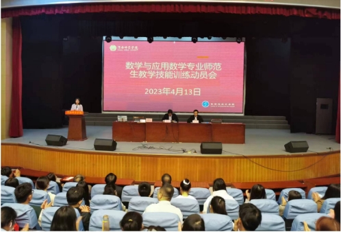 动员会上,戴磊为2020级数学与应用数学专业、2022级专升本共279名同学进行了动员,强调了教学技能对提高师范生教学能力的重要性,鼓励员工按照技能训练的节点和要求完成相关的训练。苗蓉宣读了教学技能训练实施方案,刘炳全教授和党林悦同学分别作为教师代表和员工代表发言。最后,陈斌作总结讲话,他要求各位指导老师尽职尽责为员工指导,要求员工认真训练,提高自己教学实践和教学研究的能力。