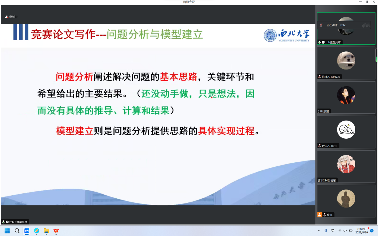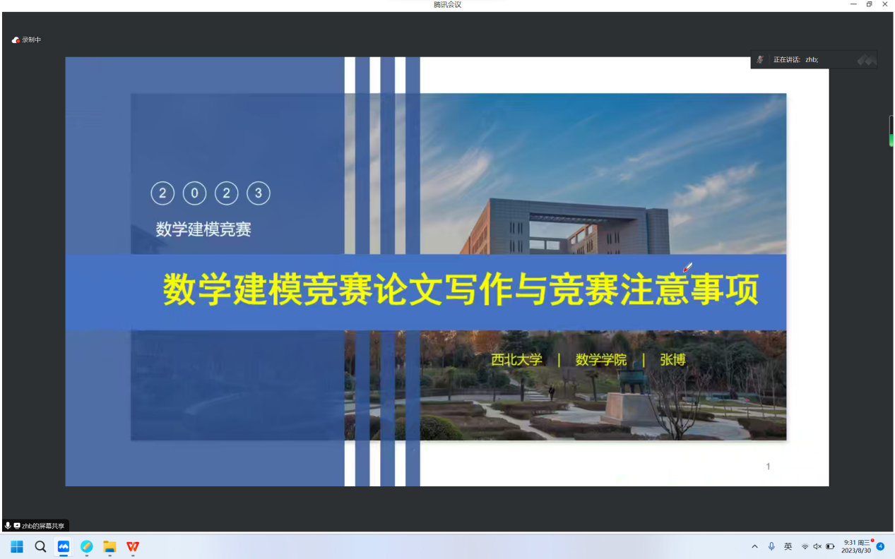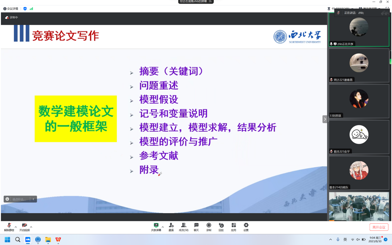 8月30日上午,公司邀请全国老员工数学建模竞赛陕西赛区组委会副秘书长兼办公室主任、西北大学数学公司张博教授作了题为《数学建模竞赛论文写作及竞赛注意事项》的建模培训报告,bevictor伟德全体指导教师和培训员工共200余人通过线上线下同时参会的形式参加了本次报告会,会议由公司数学建模负责人段卫国老师主持。