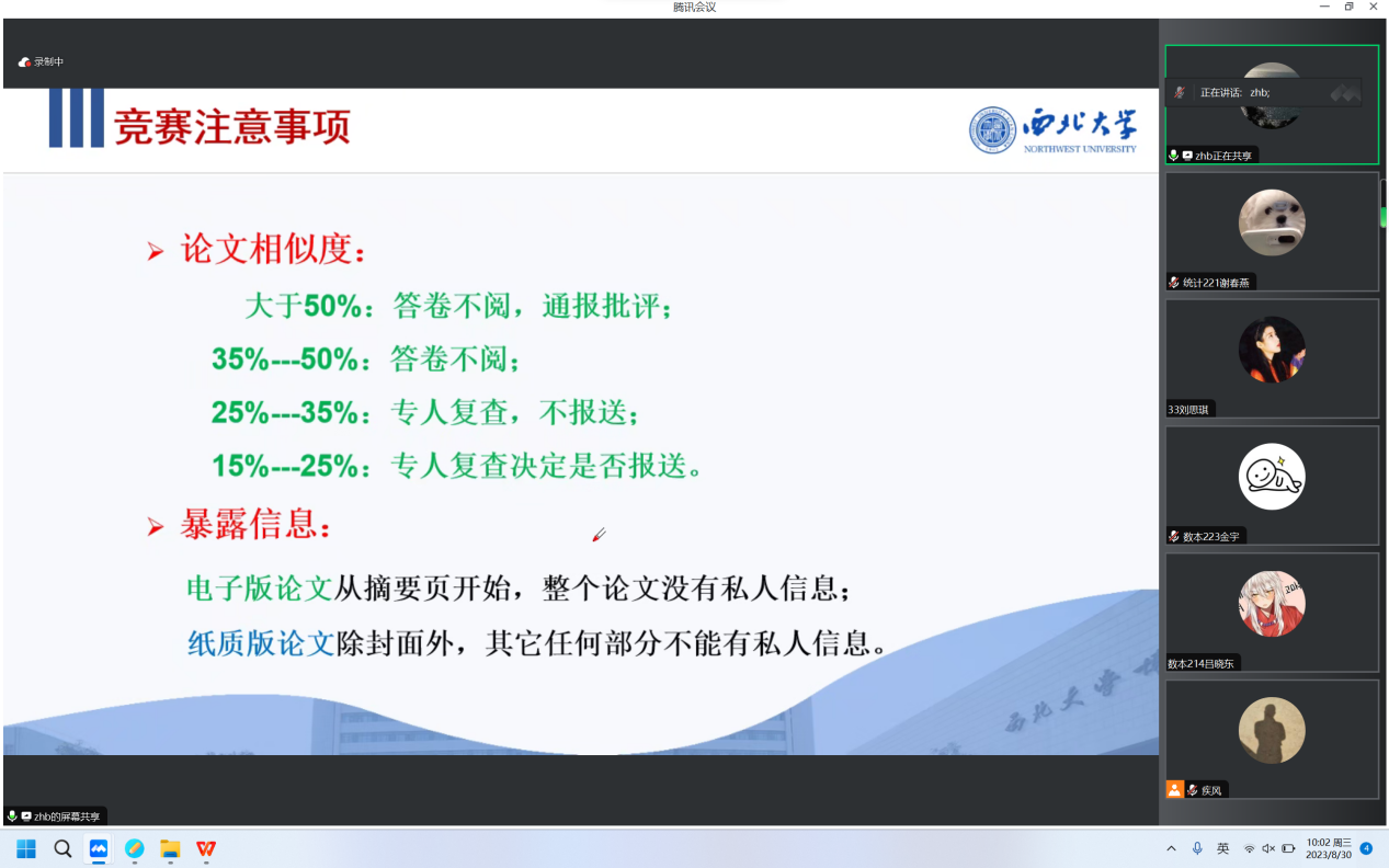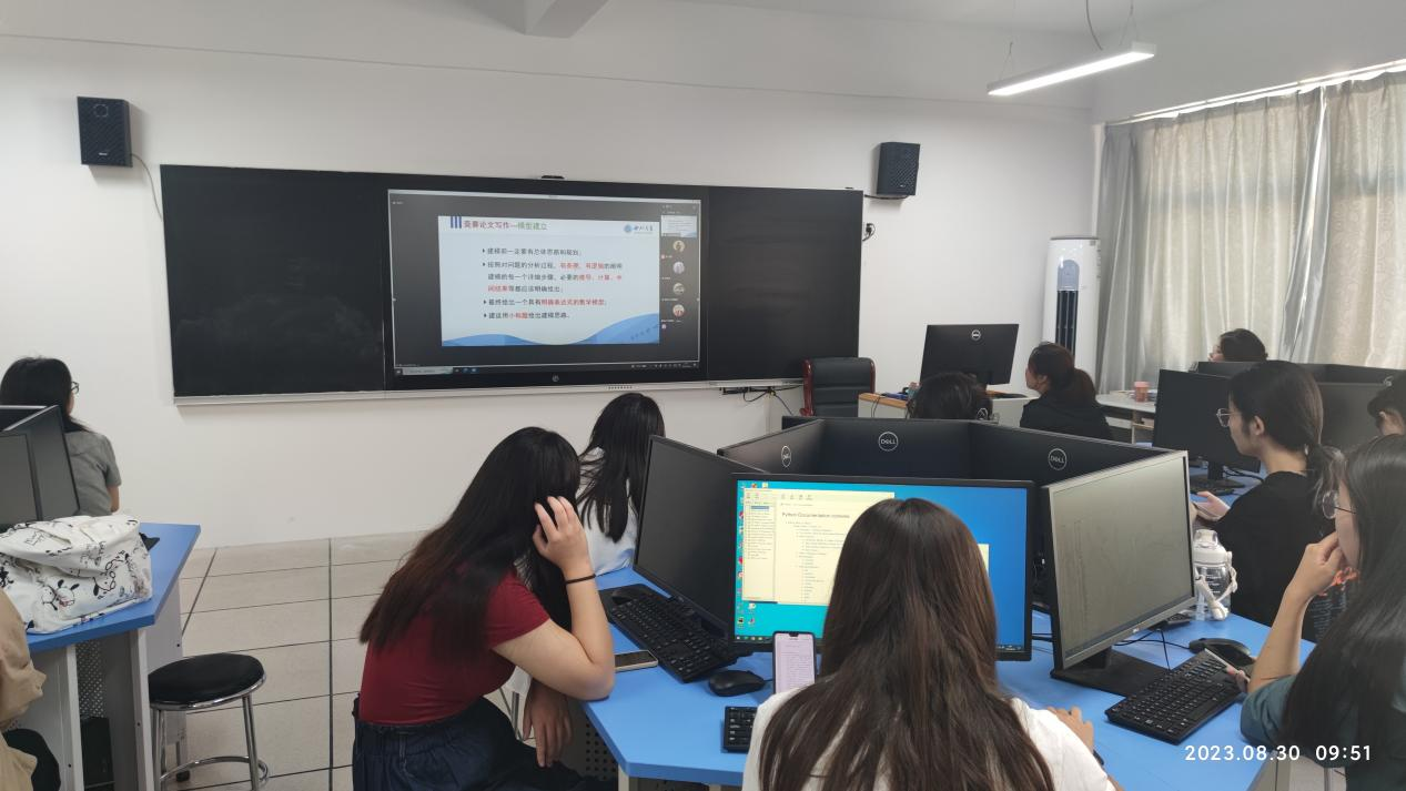 接着张教授讲述了建模论文写作的注意事项,要求同学们应诚信参赛,遵守竞赛规则,并预祝大家在全国老员工数学建模竞赛中获取良好成绩。会后,张教授线上线下与参赛员工进行了充分交流。