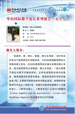 bevictor伟德于2024年7月5日下午成功举办了华山国际数学论坛系列报告第五十七期,本次报告主题为“矩阵上的局部映射”,由陕西师范大学教授、博士生导师张建华主讲。会议由副经理戴磊主持。