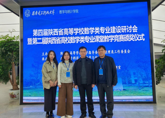 会议首先举行了第二届陕西省高等公司数学类专业课堂教学竞赛颁奖仪式,与会领导先后为2个优秀组织单位、2名优秀组织个人、9位特等奖、13位一等奖和16位二等奖获得者颁发了获奖证书,公司教师孙晨辉荣获一等奖,马妍荣获二等奖。接着与会专家主要围绕专业建设、课程建设及教学研究等重要议题进行了深入交流,陕西师范大学周红军教授、西安电子科技大学刘三阳教授分别作了题为《概率论与数理统计AI课程与新形态教材建设的一些探索与实践》和《开展教学研究的收获与体会》的报告。随后长安大学杨莹博士、西安电子科技大学冯晓莉副教授分享了自己的教学示范视频。