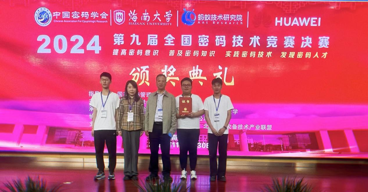 2024年11月28日至30日,由国家密码管理局指导、中国密码学会主办的第九届全国密码技术竞赛决赛在海南大学成功举办。本次竞赛吸引了包括众多“985”“211”高校在内的高水平团队参赛,是我国密码学领域的顶级赛事。公司代表队在激烈的较量中脱颖而出,取得了优异成绩,最终荣获全国三等奖。