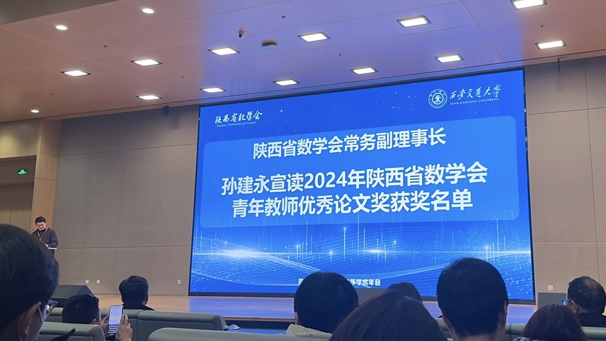 来自省内20多个高校参会,会议开幕式由陕西省数学会副秘书长刘小川教授主持,陕西省数学会理事长赵彬教授致欢迎辞,陕西省数学会常务副理事长孙建永教授宣读2024年陕西省数学会青年教师优秀论文奖,评选出优秀论文一等奖4名,二等奖6名。