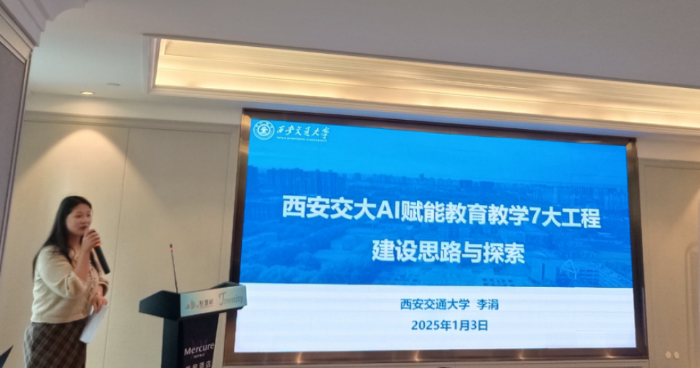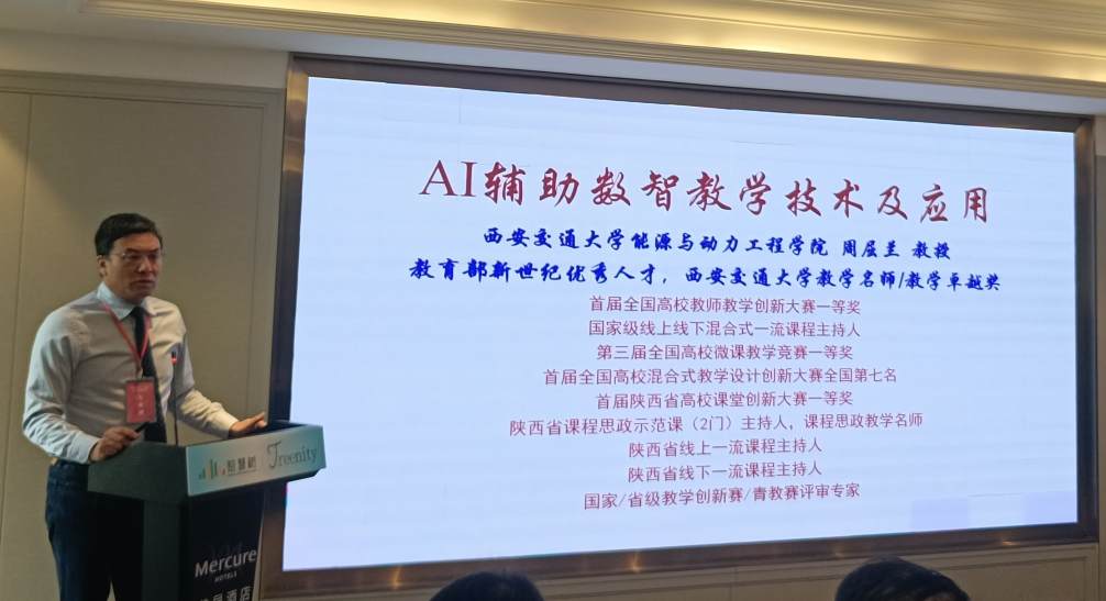 西安交通大学周屈兰教授以《AI辅助数智教学技术及应用》、西北工业大学张莹教授以《数字赋能、思维创新:AI助力开创公司产品新局面》为题分别向参会教师介绍了自己在AI赋能教学实践方面的经验和感想,表达了把“繁”留给教师,把“简”留给课堂,把“衍”留给员工的期望。