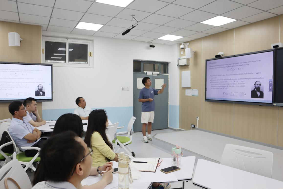 报告结束后,员工积极向郗老师提问,围绕自身学习发展困惑寻求指导。郗老师结合个人学术经历与行业经验,进行了深入且热情的分享,现场氛围热烈。最后,郗教授与数论与模形式团队方向的青年教师进行了数论相关理论的深入探讨和交流,并热情与参会老师进行合影留念。